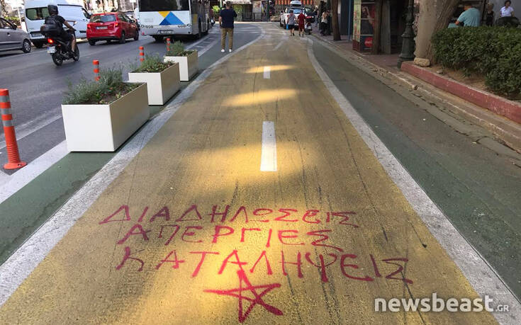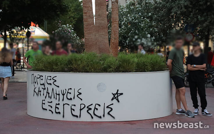 Οι ζαρντινιέρες γέμισαν με συνθήματα όπως «Πορείες, καταλήψεις, εξεγέρσεις», «μπάχαλα παντού», ακόμα και στίχους τραγουδιών της Άλκηστις Πρωτοψάλτη «να μπορούσα στα σύννεφα να’χα εγώ βενζινάδικο».