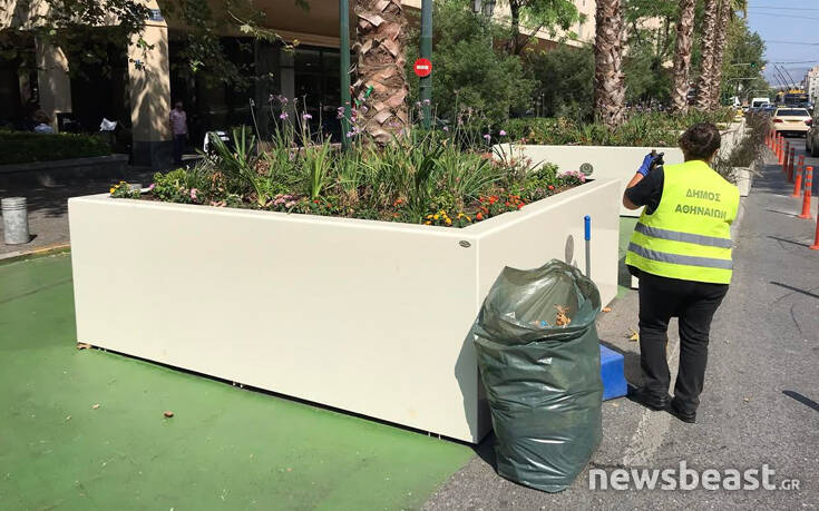Μάχη με τον χρόνο δίνουν από χθες το βράδυ τα συνεργεία του δήμου Αθηναίων για να καθαρίσουν όλες τις ζαρντινιέρες που βανδαλίστηκαν με συνθήματα κατά τη διάρκεια διαμαρτυρίας κατά του νομοσχεδίου για τις διαδηλώσεις.