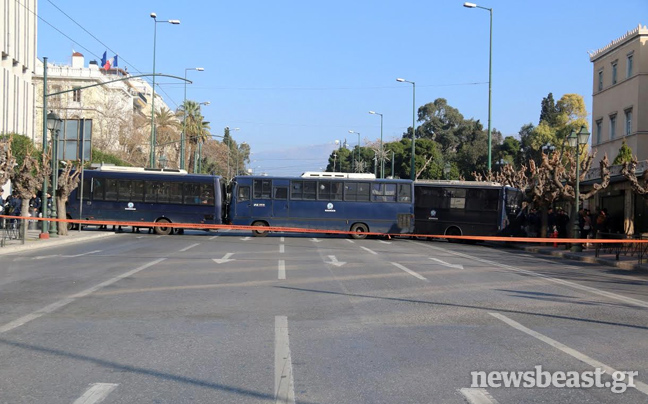 Η οδός Βασ. Σοφίας παραμένει κλειστή έξω από τη Βουλή, ενώ η τροχαία έχει προχωρήσει σε κυκλοφοριακές ρυθμίσεις.
