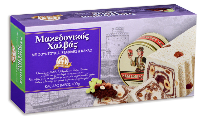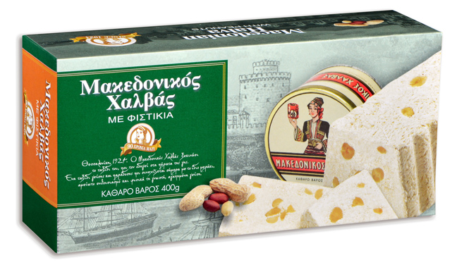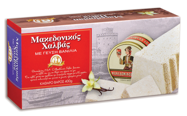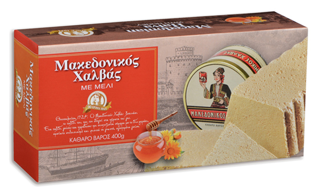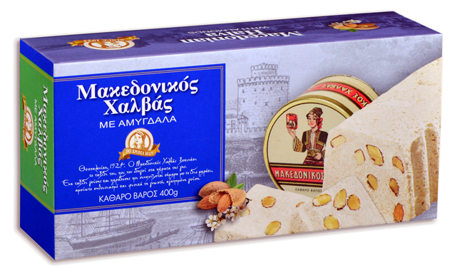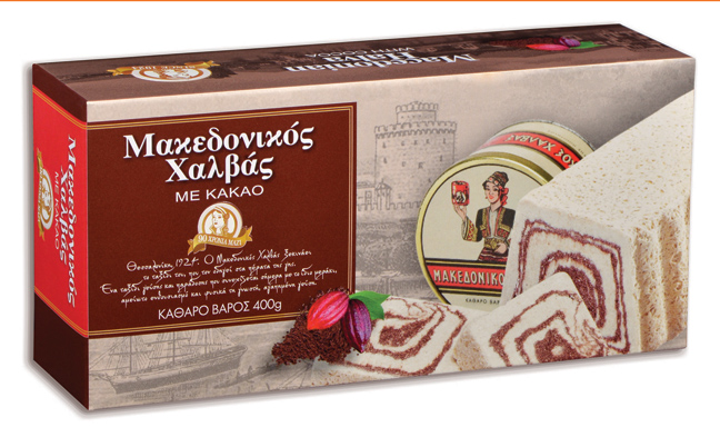 Στις νέες συσκευασίες – με τις ανάγλυφες λεπτομέρειες των 90 Χρόνων – αποτυπώνονται χαρακτηριστικές εικόνες της πρώτης συσκευασίας Μακεδονικού Χαλβά και της Θεσσαλονίκης του 1924. Οι νέες συσκευασίες διακρίνονται, επίσης, για την κομψότητα και τις λιτές γραμμές τους καθώς και για την προβολή της διατροφικής αξίας του χειροποίητου αυτού ελληνικού προϊόντος, που παράγεται από ταχίνι (δηλαδή 100% αλεσμένο σησάμι) και διατηρεί ακέραια όλα τα ευεργετικά συστατικά του πολύτιμου αυτού σπόρου.