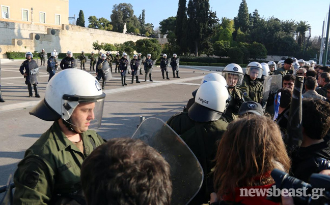 Άμεση ήταν η επέμβαση των ΜΑΤ που τους απομάκρυναν.