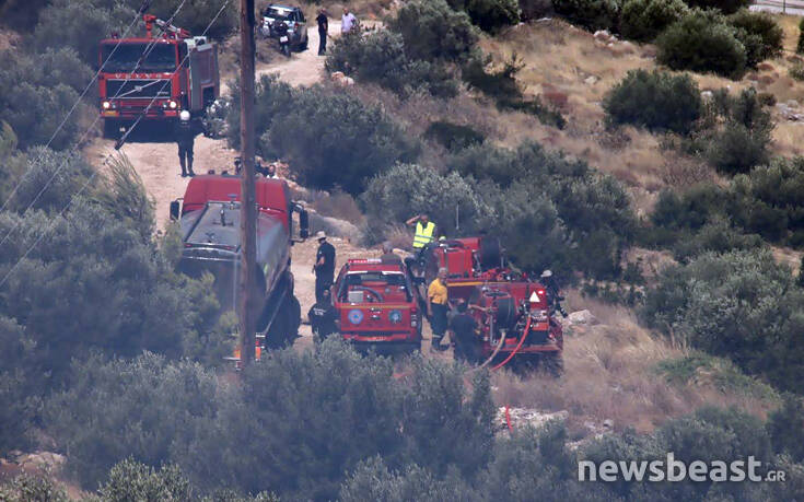 Στο σημείο παραμένουν 25 πυροσβέστες, με 10 οχήματα και ένα ελικόπτερο, ενώ την επιχείρηση κατάσβεσης συνδράμουν και εθελοντές.