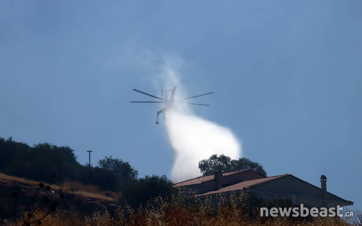 Μετά από εισήγηση της Πυροσβεστικής απομακρύνθηκαν πριν από λίγο ηλικιωμένοι από γηροκομείο, αφού η φωτιά είναι σε κοντινή απόσταση.