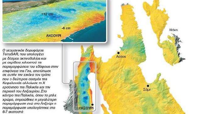Σύμφωνα με την εφημερίδα «Τα Νέα», το μέγεθος της παραμόρφωσης που προκάλεσαν ο δεύτερος σεισμός της 3ης Φεβρουαρίου αλλά και τι πλήθος μετασεισμών, κυρίως στη Χερσόνησο της Παλικής, αποτυπώθηκε από τον γερμανικό δορυφόρο- Ραντάρ TerraSAR, ο οποίος περνά πάνω ανά 11 ημέρες πάνω από κάθε περιοχή της Γης, σε απόσταση 700 χιλιομέτρων.