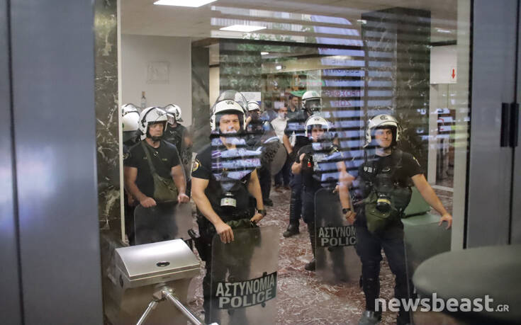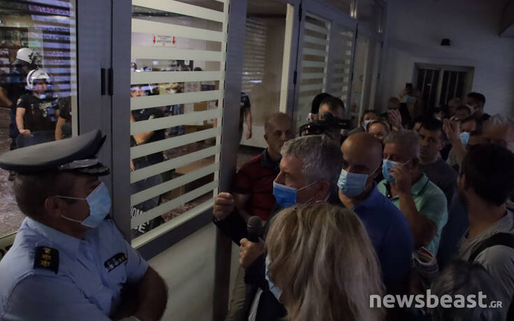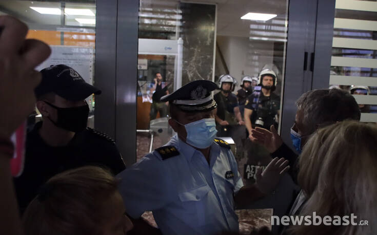 Οι διαδηλωτές θέλησαν να μπουν στο κτίριο αλλά βρέθηκαν μπροστά από κλειστές πόρτες, πίσω από τις οποίες υπήρχαν ισχυρές αστυνομικές δυνάμεις. Μάλιστα ο αστυνομικός που βρισκόταν στην είσοδο ζήτησε από έναν γιατρό να φορέσει μάσκα.