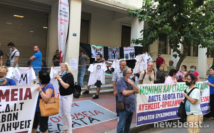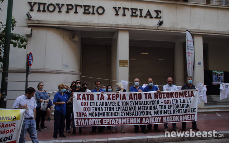 «16.000 εργάζονται στα Νοσοκομεία και τις άλλες υπηρεσίες υγείας με ελαστικές μορφές απασχόλησης». Καλύπτουν πάγιες και διαρκείς ανάγκες καθότι οι κενές οργανικές θέσεις είναι 40.000» προστίθεται στην ανακοίνωση.