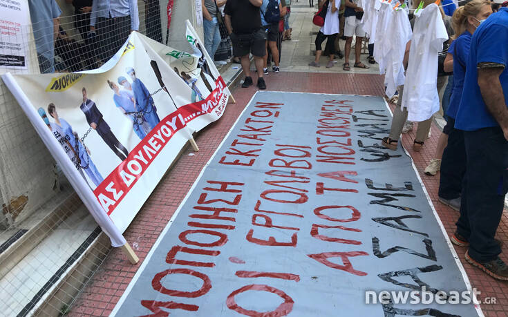 Κάποιοι από τους συγκεντρωμένους έφυγαν με κατεύθυνση προς το Μαξίμου μαζί με τον πρόεδρο της ΠΟΕΔΗΝ Μιχάλη Γιαννακό και οι υπόλοιποι παρέμειναν στο υπουργείο Υγείας.