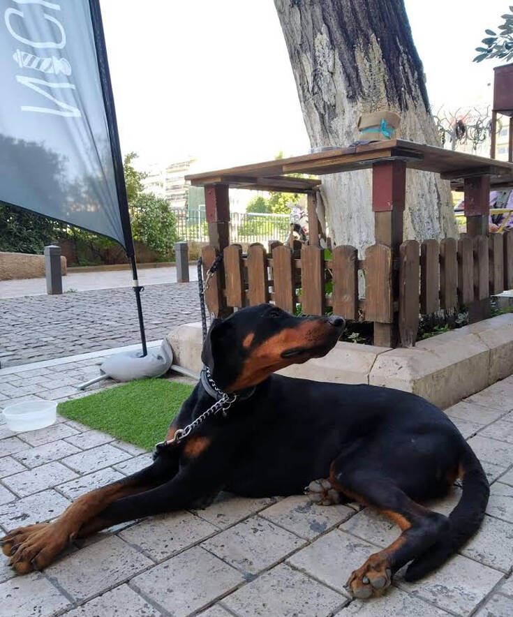 «Ξυπνάει το πρωί, γύρω στις 7 και κλαίει. Ελαφρώς… κακομαθημένη, θα μπορούσες να την πεις», λέει ο Μάνος Μυριαγκός περιγράφοντας την καθημερινότητά του με την Κύα. Ένα μεγαλόσωμο ντόμπερμαν περίπου τεσσάρων ετών, που έχει υιοθετήσει μαζί με το φίλο του Νίκο Μακρή εδώ και 2,5 μήνες. Η Κύα έχει αλλάξει τέσσερις ιδιοκτήτες, υποφέρει από λεϊσμανίαση, σκουλήκι της καρδιάς και υψηλή πίεση, ενώ μέχρι πριν από λίγο καιρό ζούσε σε αγέλη στο πρώην στρατόπεδο Παύλου Μελά και ήταν «κίνδυνος-θάνατος» για γατάκια και κάθε μικρόσωμο ζωάκι.