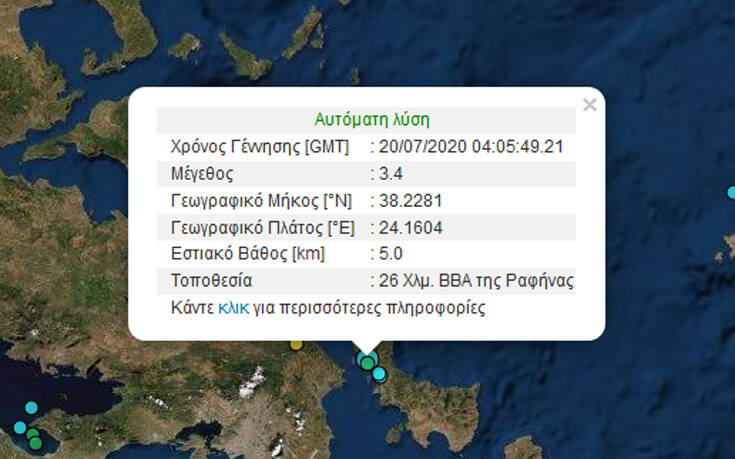 Σεισμός 3,4 Ρίχτερ σημειώθηκε λίγα λεπτά μετά τις 7 το πρωί με επίκεντρο τη νότια Εύβοια.
