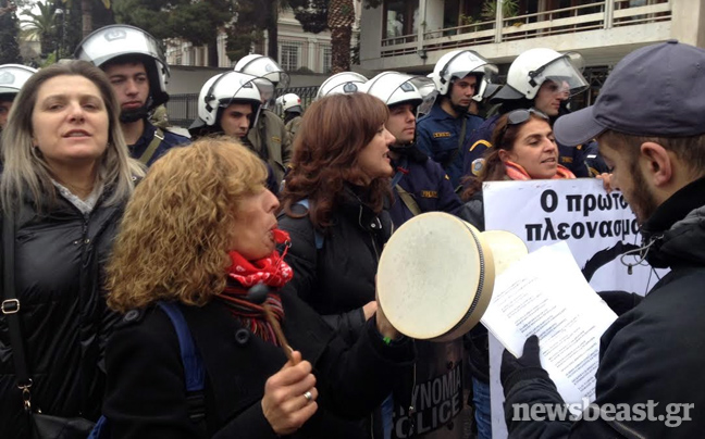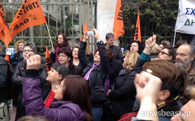 Στο υπουργείο Διοικητικής Μεταρρύθμισης βρίσκονται αυτή την ώρα σχολικοί φύλακες, εκπαιδευτικοί και καθαρίστριες του υπουργείου Οικονομικών και διαμαρτύρονται για τις διαθεσιμότητες.