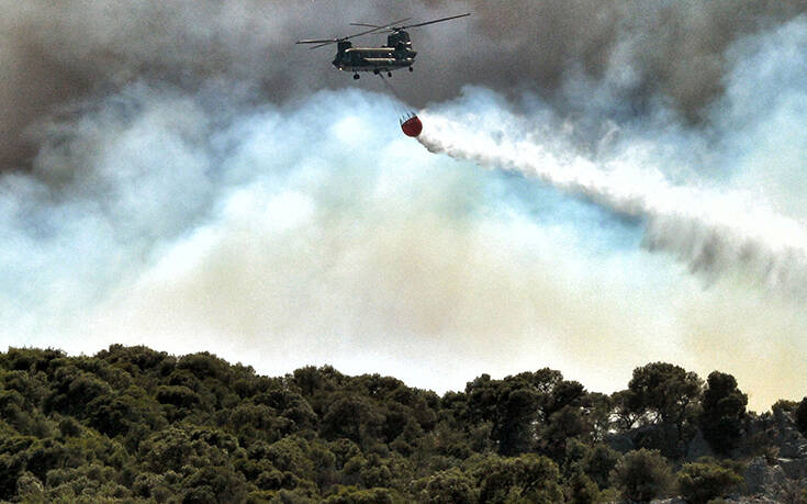 Υπενθυμίζεται ότι, στην επιχείρηση κατάσβεσης της φωτιάς συμμετέχουν 37 πυροσβέστες με 13 οχήματα και μία ομάδα πεζοπόρου τμήματος, ενώ από αέρος πραγματοποιούν ρίψεις νερού 4 αεροπλάνα και 3 ελικόπτερα.