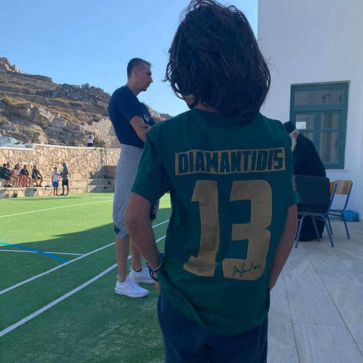 Ο Δημήτρης Διαμαντίδης, πρεσβευτής του προγράμματος «Μικροί Ήρωες» παρευρέθηκε στα εγκαίνια του πολυγηπέδου, δίνοντας την ευκαιρία στα παιδιά της Σικίνου να παίξουν μαζί του, ενώ είχαν τη χαρά να μοιραστούν ιστορίες από τα δικά τους γήπεδα και να τους χαρίσουν δώρα. Ο σπουδαίος αθλητής δεν σταμάτησε να μιλά με τους κατοίκους του νησιού και να υπογράφει αυτόγραφα στα παιδιά, αλλά και μπάλες που θα μείνουν στο χώρο του σχολείου. Και φυσικά ήταν από τους πρώτους που εγκαινίασαν το γήπεδο με ένα καλάθι!