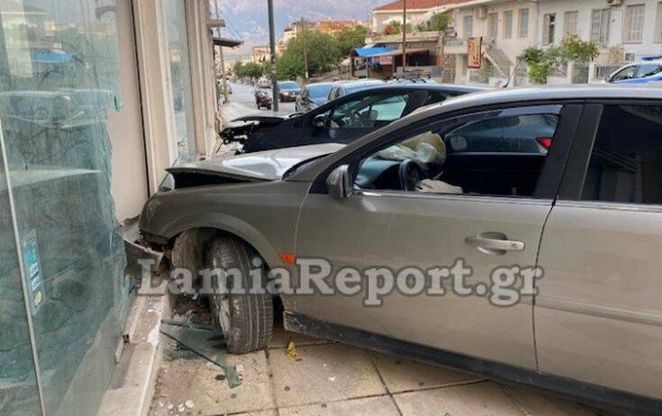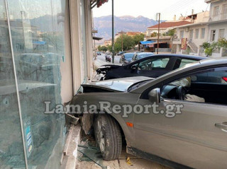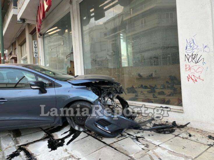 Το αυτοκίνητο πέρασε στο αντίθετο ρεύμα και έπεσε με δύναμη πάνω σε παρκαρισμένο όχημα. Στη συνέχεια και τα δυο αυτοκίνητα κατέληξαν στην τζαμαρία καταστήματος.