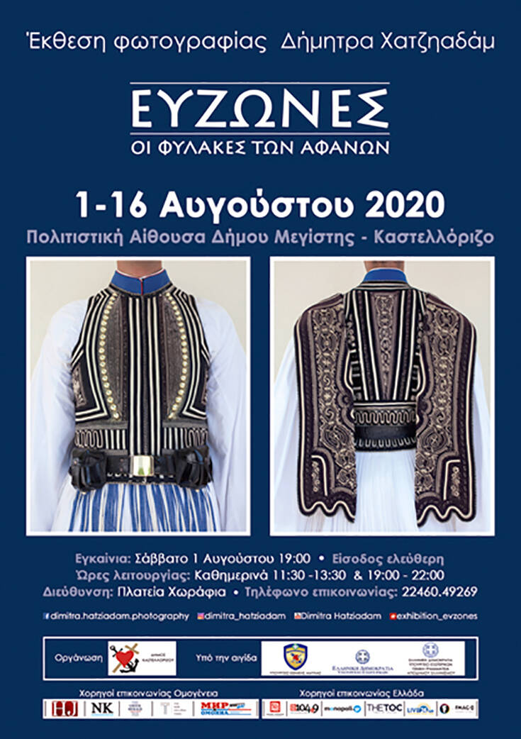 Ο Δήμος Καστελλόριζου με ιδιαίτερη χαρά και τιμή παρουσιάζει την 14η ατομική έκθεση φωτογραφίας της καταξιωμένης φωτογράφου Δήμητρας Χατζηαδάμ, στη Πολιτιστική Αίθουσα Δ. Μεγίστης, από 1 έως 16 Αυγούστου 2020. Tα εγκαίνια θα πραγματοποιηθούν το Σάββατο 1 Αυγούστου 2020, στις 19:00 και την εκδήλωση θα τιμήσει ο υφυπουργός Εθνικής Άμυνας, κ. Στεφανής Αλκιβιάδης. Η έκθεση τελεί υπό την Αιγίδα του Υπουργείου Εθνικής Αμύνης, του Υπουργείου Εξωτερικών και της Γενικής Γραμματείας Απόδημου Ελληνισμού.