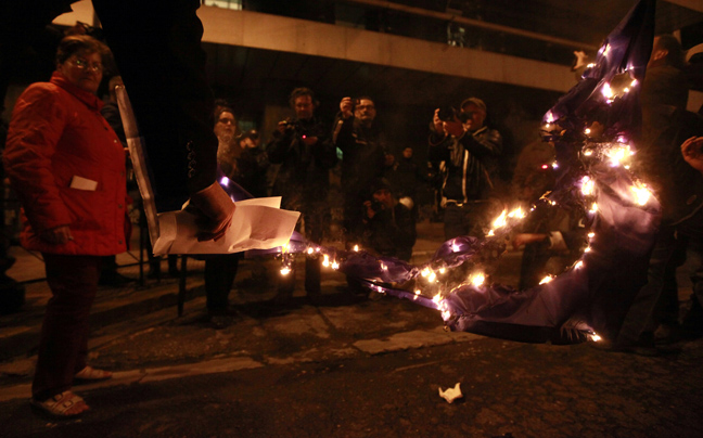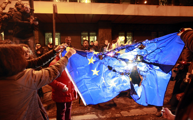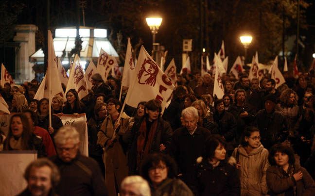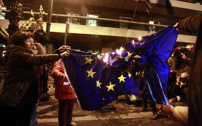 Με πορεία στα γραφεία της ΕΕ στην Αθήνα, ολοκληρώθηκε η συγκέντρωση του ΠΑΜΕ, της ΟΓΕ, της ΠΑΣΕΒΕ και του ΜΑΣ στα Προπύλαια, για την Παγκόσμια Μέρα της Γυναίκας, ενώ οι διαδηλωτές έκαψαν μια σημαία της ΕΕ μπροστά στα γραφεία της, καταγγέλλοντας συμβολικά την «ένωση των ιμπεριαλιστών που μας έχει μαυρίσει την ζωή».