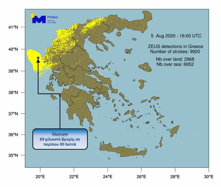 Έως χθες το απόγευμα έπεσαν 9.900 κεραυνοίστη Βορειοδυτική Ελλάδα όπως καταγράφηκε από το σύστημα «ΖΕΥΣ» του Εθνικού Αστεροσκοπείου Αθηνών.