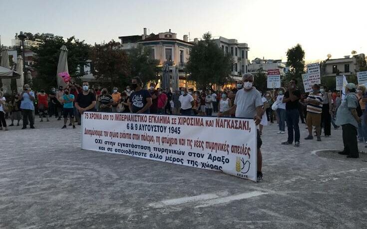 «75 χρόνια από το ιμπεριαλιστικό έγκλημα σε Χιροσίμα και Ναγκασάκι – Δυναμώνουμε τον αγώνα ενάντια στον πόλεμο, τη φτώχεια και τις νέες πυρηνικές απειλές», αναφέρουν μεταξύ άλλων σε πανό οι συγκεντρωμένοι.