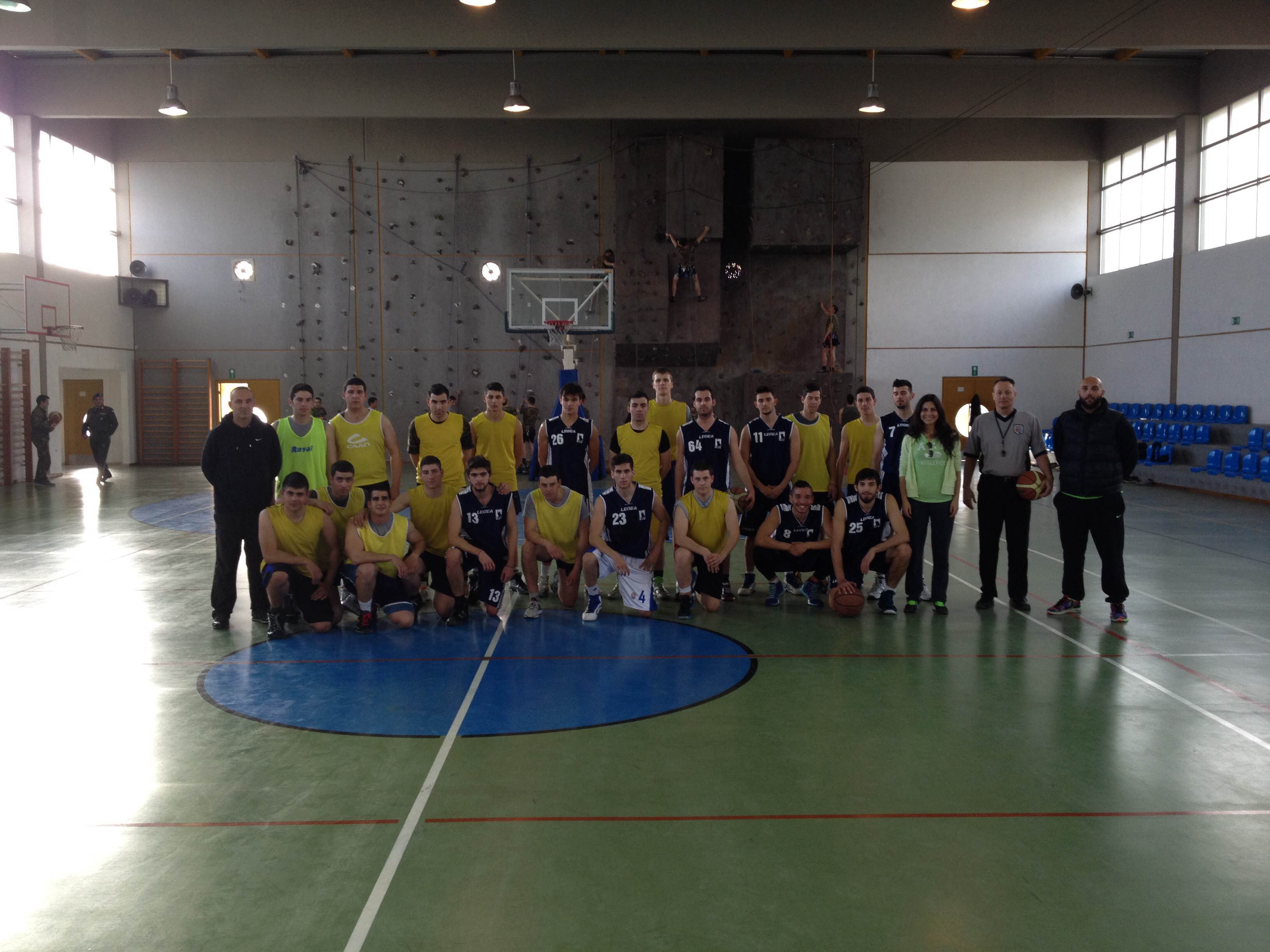 Οι αθλητές των ομάδων καλαθοσφαίρισης του New York College και της Στρατιωτικής Σχολής Ευελπίδων με τους προπονητές τους και την κα Κρυνάνθη Γαβριηλίδου, Διευθύντρια του Αθλητικών Δρώμενων του NYC.
