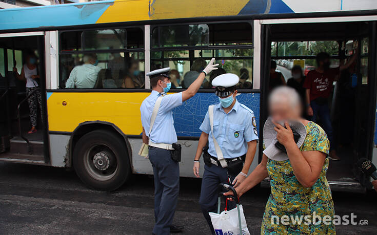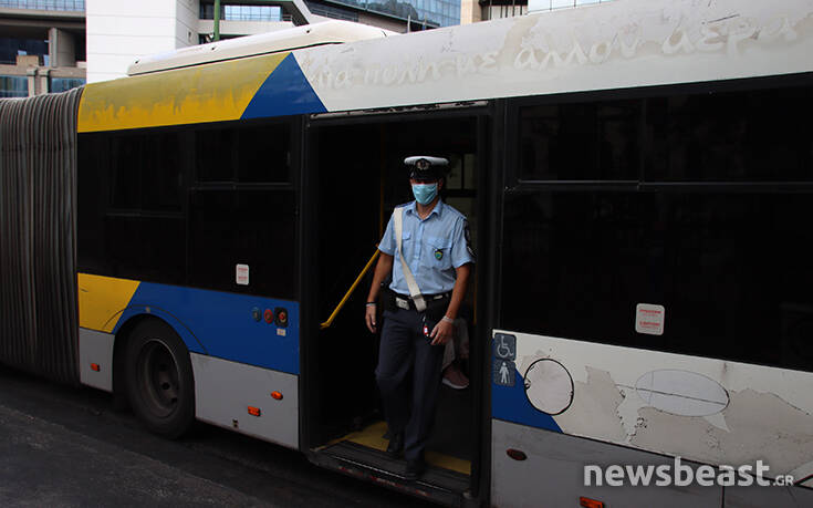 Μάλιστα όπως κατέγραψε η κάμερα του newsbeast.gr σε έλεγχο της τροχαίας στη λεωφόρο Μεσογείων μία κυρία που δεν είχε μάσκα και χρησιμοποιούσε αντί αυτής ένα καπέλο, αποβιβάστηκε για να τις βεβαιωθεί πρόστιμο.