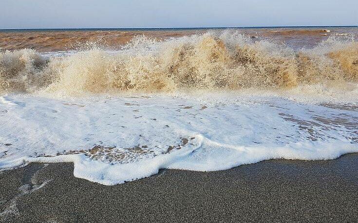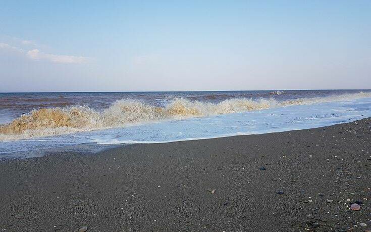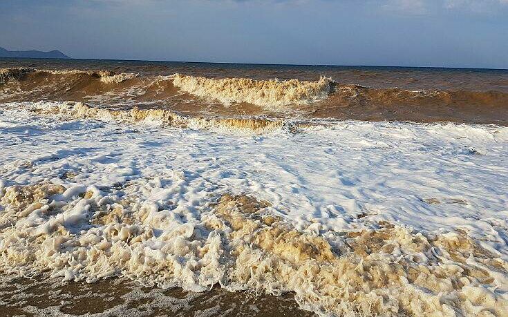 Στην Ανατολική Εύβοια , τα νερά στις παραλίες έγιναν καφέ από τα φερτά υλικά που κατέβασαν τα ορμητικά νερά.
