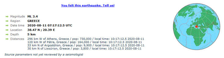 Σεισμός σημειώθηκε στην Κεφαλονιά.