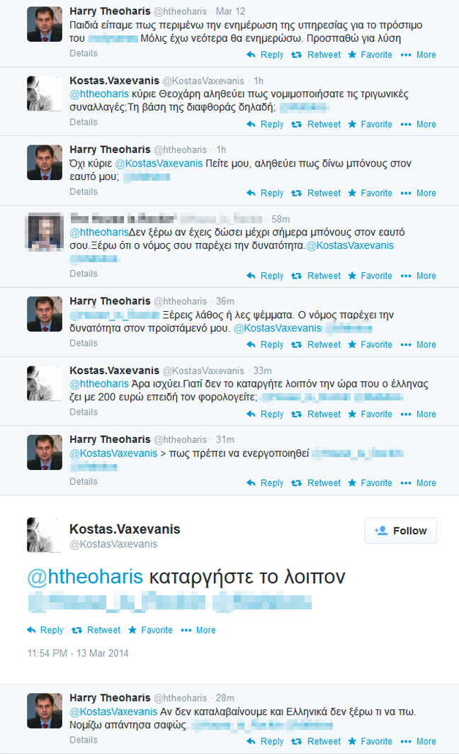Σε λεκτική αντιπαράθεση μέσω Twitter προχώρησαν πριν λίγο ο Γενικός Γραμματέας Δημοσίων Εσόδων κ. Χ. Θεοχάρης και ο γνωστός δημοσιογράφος Κώστας Βαξεβάνης.