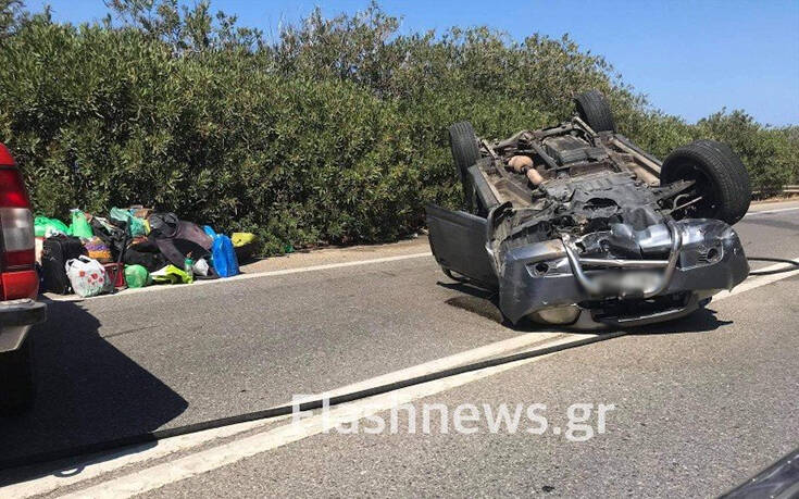 Το όχημα αναποδογύρισε στην μέση του δρόμου με δύο τραυματίες να μεταφέρονται, σε καλή κατάσταση, στο Γενικό Νοσοκομείο Ρεθύμνου.