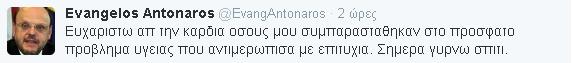 Ο πρώην κυβερνητικός εκπρόσωπος που υποβλήθηκε σε επέμβαση ρουτίνας, μέσα από τη σελίδα του στο twitter ευχαρίστησε όλους εκείνους που του συμπαραστάθηκαν και ανακοίνωσε ότι έλαβε εξιτήριο από το νοσοκομείο.