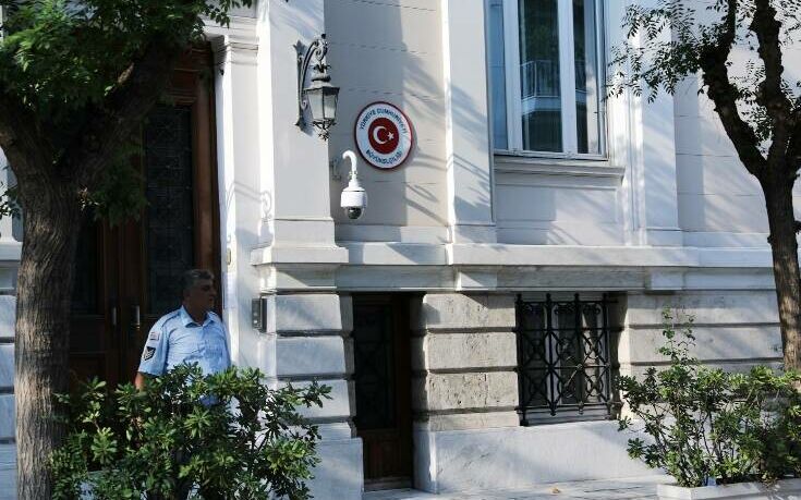 Συγκεκριμένα τα δύο άτομα βρέθηκαν έξω από το κτήριο στην οδό Βασιλέως Γεωργίου 7, όπου στεγάζεται η τουρκική πρεσβεία πετώντας μπογιές στο δρόμο και τρικάκια.