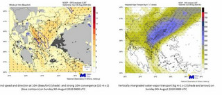 Η παρουσία εξαιρετικά ασταθών αερίων μαζών και η απότομη μεταφορά τους αποτυπώνεται στο παρακάτω σχήμα όπου παρουσιάζεται η συγκέντρωση υδρατμών μέσα στην ατμόσφαιρα (σχήμα δεξιά).
