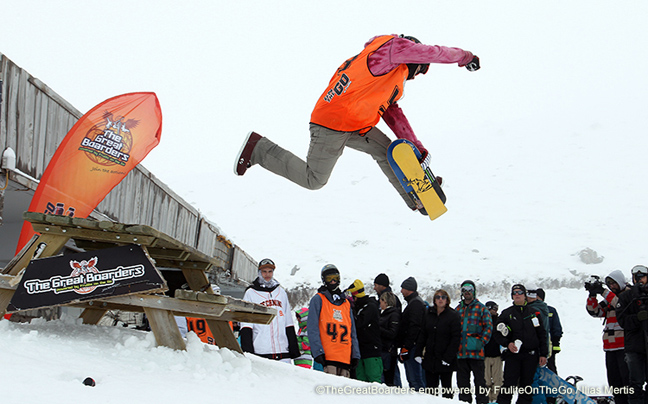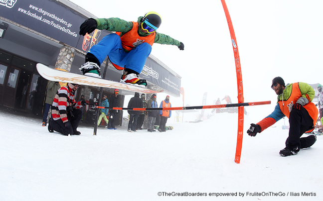 Το διήμερο snowboard event ξεκίνησε με great stunts, πολύ κέφι, άφθονο και γεμάτο φυσική ενέργεια Frulite OnTheGo! Εντυπωσιακά άλματα από τους καλύτερους snowboarders της ελληνικής σκηνής, ασταμάτητο free waxing από τον μοναδικό Daniel Petrov και board test demo από την ομάδα του Fifty-Fifty ήταν μερικά από τα highlights της 1ης μέρας όπου κορυφώθηκαν με την απονομή από τον Αντώνη Δαυίδ των νικητών στα κόλπα επιδεξιότητας.