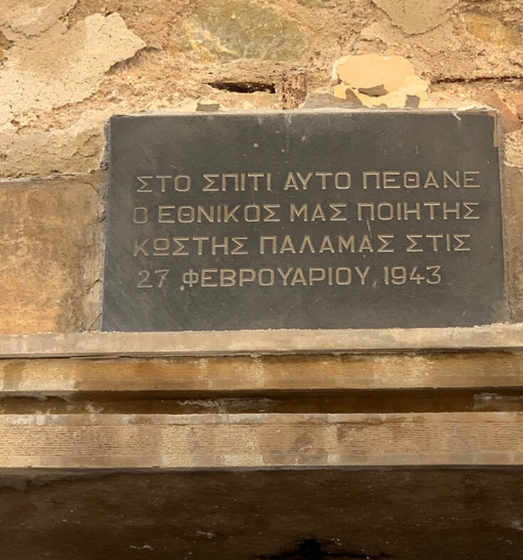 Μια πλάκα πάνω από την κύρια είσοδο του σπιτιού αναγράφει: «Στο σπίτι αυτό πέθανε ο εθνικός μας ποιητής Κωστής Παλαμάς στις 27 Φεβρουαρίου 1943».