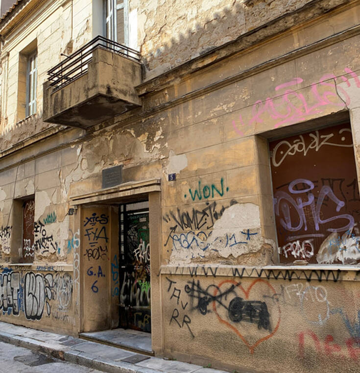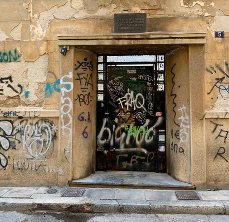 Σήμερα μια πινακίδα στην είσοδο του κτηρίου δηλώνει ότι στο κτίριο αυτό έζησε για κάποια χρόνια ο ποιητής. Παρά τις προσπάθειες που έγιναν κατά καιρούς από τους ιδιοκτήτες για την πώληση του κτιρίου κάτι τέτοιο δεν κατέστη δυνατόν».
