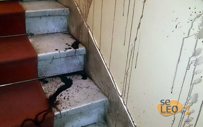Οι δράστες μπήκαν στα γραφεία της ΕΣΗΕΜΘ και πέταξαν μπογιές και έγραψαν συνθήματα στους τοίχους.