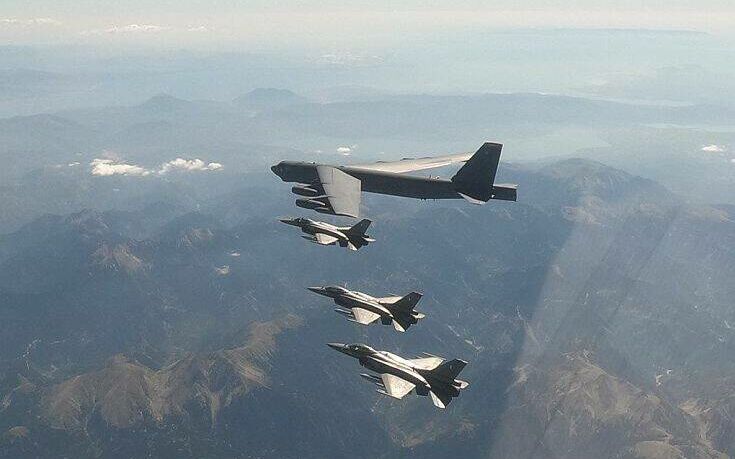 Τέσσερα αεροσκάφη F-16 BLK 52+ συνόδευσαν ένα αμερικανικό στρατηγικό βομβαρδιστικό τύπου Β-52, χθες, στο πλαίσιο της δραστηριότητας ALLIED SKY, “επιδεικνύοντας τους ισχυρούς συμμαχικούς δεσμούς των κρατών μελών του ΝΑΤΟ”, όπως ανακοινώθηκε από το ΓΕΕΘΑ.