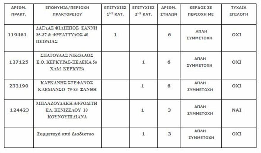 Στη δεύτερη κατηγορία κερδών βρέθηκαν 4 επιτυχίες που θα πάρουν 22.084 ευρώ.