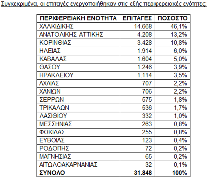 Οι επιταγές ενεργοποιήθηκαν στις περιφερειακές ενότητες που επισυνάπτονται.