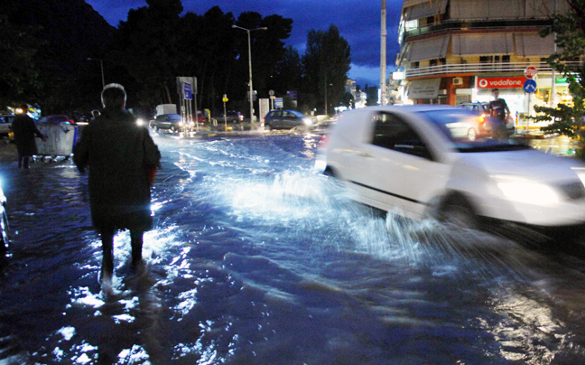 Σε ποτάμια μετατράπηκαν οι δρόμοι του Ναυπλίου λόγω της ισχυρής βροχόπτωσης.