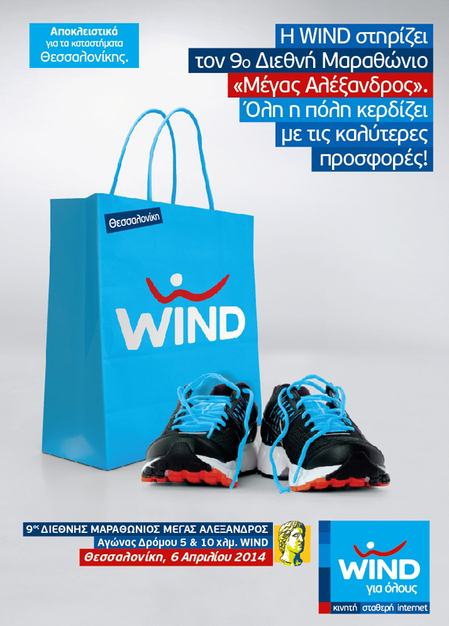 Η WIND, Επίσημος χορηγός της Διοργάνωσης, ονομαστικός χορηγός των 5 και 10χλμ και Πάροχος Τηλεπικοινωνιακών υπηρεσιών της διοργάνωσης, τρέχει με την ομάδα της WIND Running Team για καλό σκοπό, συνδυάζοντας για ακόμα μια φορά τον αθλητισμό με την κοινωνική αλληλεγγύη.