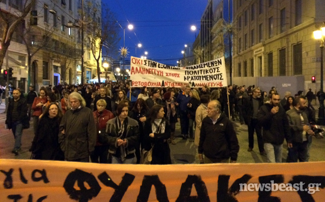Πορεία στις οδούς Πανεπιστημίου και Σταδίου πραγματοποιούν αυτή την ώρα αριστερές οργανώσεις και αντιεξουσιαστές, διαμαρτυρόμενοι για την αντιμετώπιση των κρατουμένων από το σωφρονιστικό σύστημα.