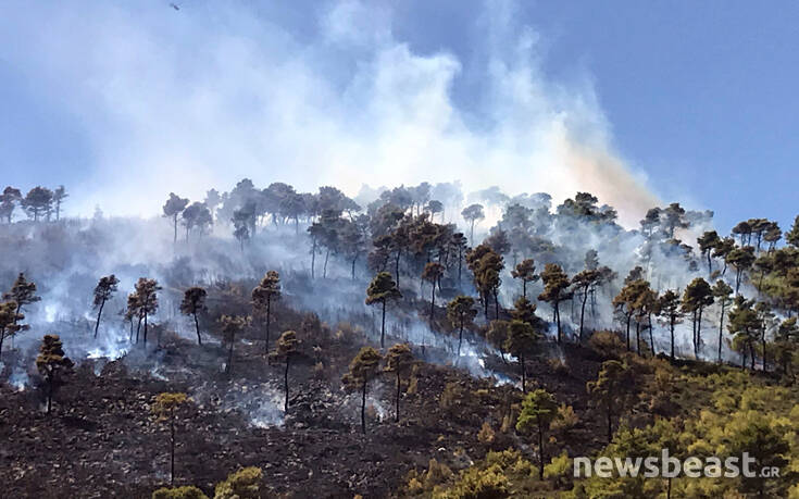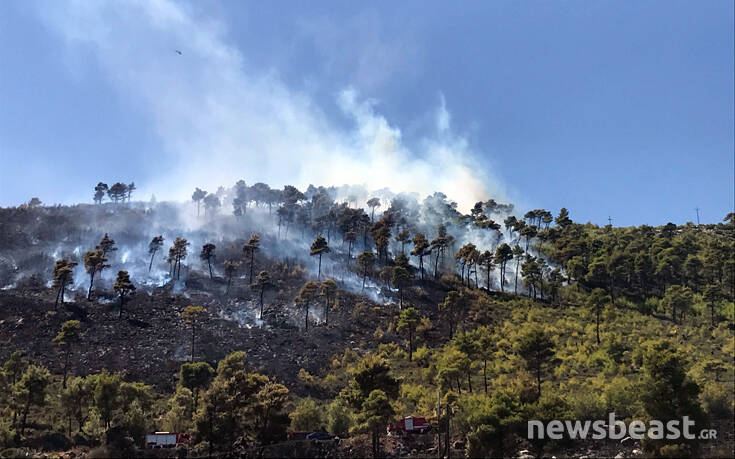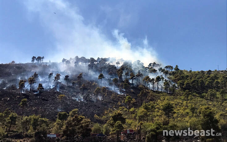 Αυτή τη στιγμή επιχειρούν 41 πυροσβέστες με 12 οχήματα, 3 ομάδες πεζοπόρων τμημάτων, το μηχανοκίνητο της Πυροσβεστικής, 2 αεροσκάφη και 3 ελικόπτερα, ενώ συνδράμουν και υδροφόρες ΟΤΑ.