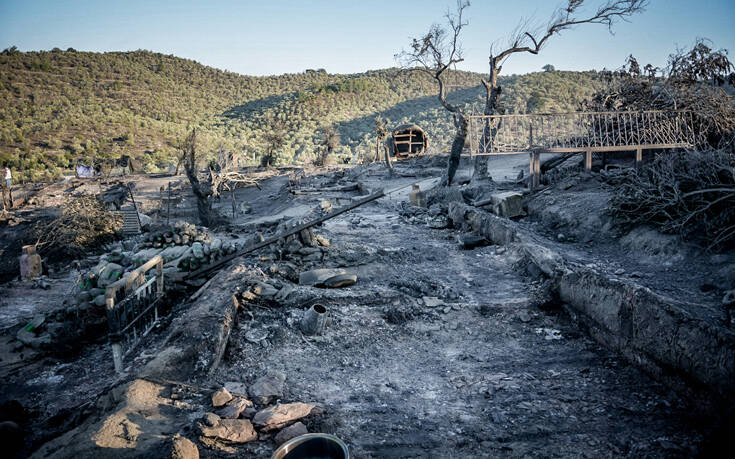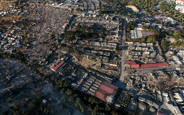 Καμένη γη άφησαν πίσω τους οι φωτιές που ξέσπασαν στο Κέντρο Υποδοχής και Ταυτοποίησης στη Μόρια. Οι εικόνες που τράβηξε από ψηλά ο φωτογραφικός φακός δείχνουν την ολοκληρωτική καταστροφή. Παντού καμένα, παντού μαυρίλα.
