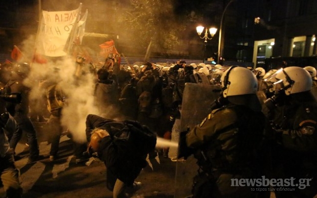 Εκείνη την ώρα το μεγαλύτερο κομμάτι της πορείας βρισκόταν στην Σταδίου, ενώ το ΠΑΜΕ που ανέβαινε την Πανεπιστημίου σταμάτησε βλέποντας μπροστά τους υπόλοιπους συγκεντρωμένους.