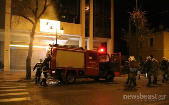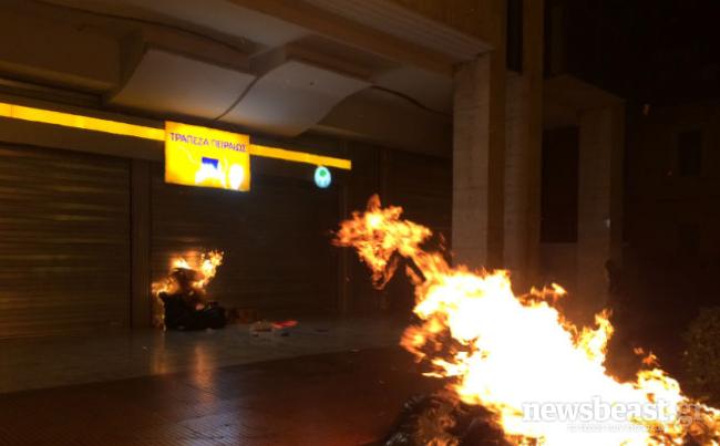 Φωτιά έβαλαν άγνωστοι σε σακούλες σκουπιδιών και χαρτόκουτα έξω από την Τράπεζα Πειραιώς στη Στάδιου και αργότερα έφτασε στο σημείο η Πυροσβεστική Υπηρεσία.