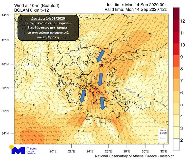 Ενισχυμένοι άνεμοι βορείων διευθύνσεων θα επικρατήσουν σήμερα, κυρίως στο Αιγαίο, καθώς επίσης σε περιοχές της ανατολικής και νότιας ηπειρωτικής χώρας και της Θράκης, σύμφωνα με τα τελευταία προγνωστικά στοιχεία του Εθνικού Αστεροσκοπείου Αθηνών/Meteo.gr.