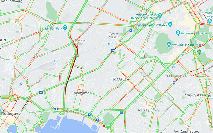 Τα κυκλοφοριακά προβλήματα οφείλονται σε φωτιά που ξέσπασε σε φορτηγό από μηχανική βλάβη στο ύψος του Allou Fun Par