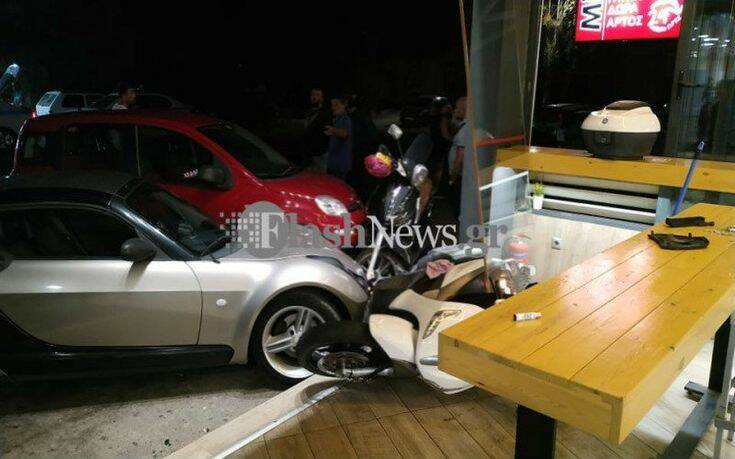 Γλύτωσαν με μερικά τράυματα στα πόδια, γιατί, πρώτον, στην είσοδο υπήρχε σκαλοπάτι και δεύτερον γιατί μπροστά από το κατάστημα ήταν σταματημένα ένα ΙΧ αυτοκίνητο και μια μηχανή που ανέκοψαν την ταχύτητα του, εν λόγω, αυτοκινήτου του 25χρονου.