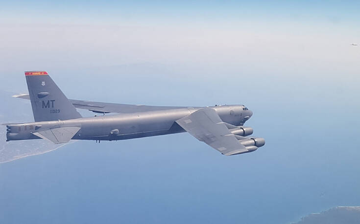 Τα ελληνικά F-16 ανέλαβαν συνοδευτικό ρόλο των Β-52 εντός των FIR Αθηνών και Λευκωσίας με διαδρομή πάνω από την Ήπειρο, τη Μακεδονία, τις Βόρειες Σποράδες, τις Κυκλάδες, τα Δωδεκάνησα και δυτικά της Κύπρου, όπως μεταδίδει το ΑΜΠΕ.
