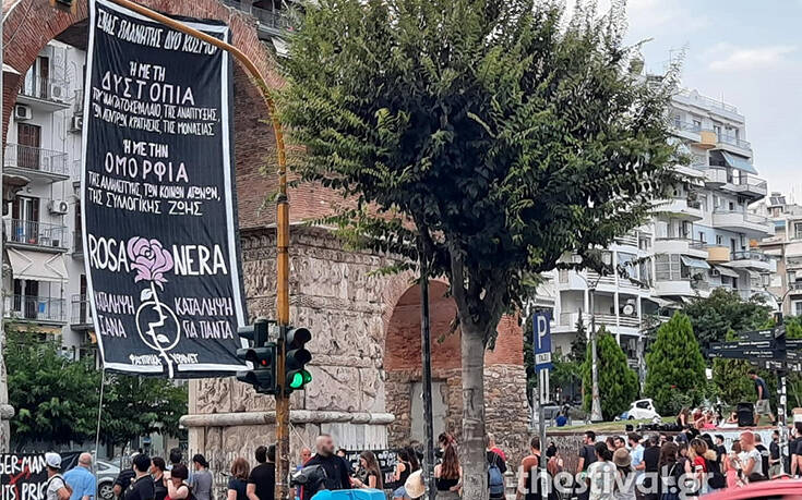 Στα κείμενα που εκφώνησαν από μικροφωνική εξέφρασαν την αλληλεγγύη τους και στους 51 συλληφθέντες για την αναγραφή συνθημάτων στο χώρο του Λευκού Πύργου, καθώς και σε άλλες καταλήψεις στη Θεσσαλονίκη κι άλλες πόλεις.