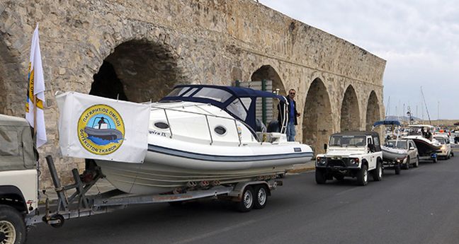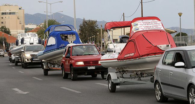 Οι ιδιοκτήτες σκαφών ξεκίνησαν με τα σκάφη τους από το καρνάγιο και κινήθηκαν στους δρόμους της πόλης για να καταλήξουν στην προβλήτα 6 του λιμανιού.